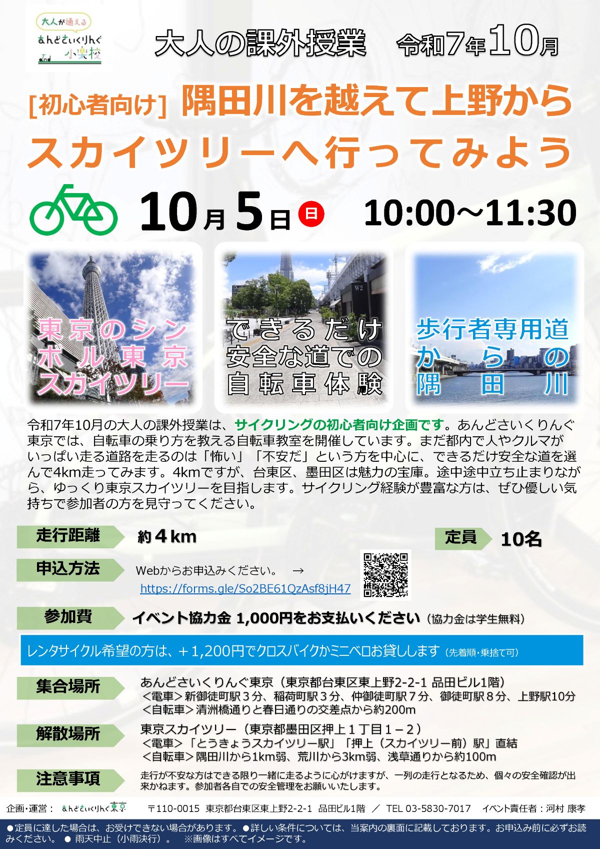 令和7年10月5日(日)10:00~11:30(東京スカイツリー解散)